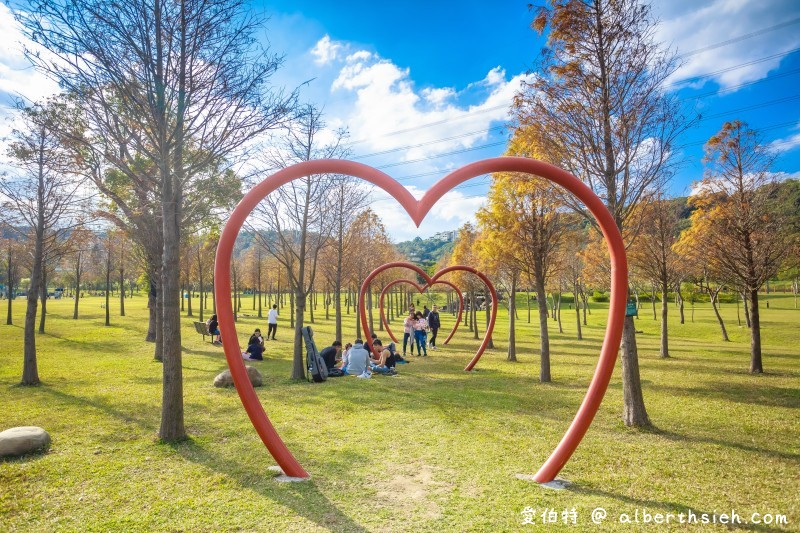 - 桃園落羽松大溪河濱公園(三愛心造景必拍,大草坪讓你愜意悠閒的野餐)